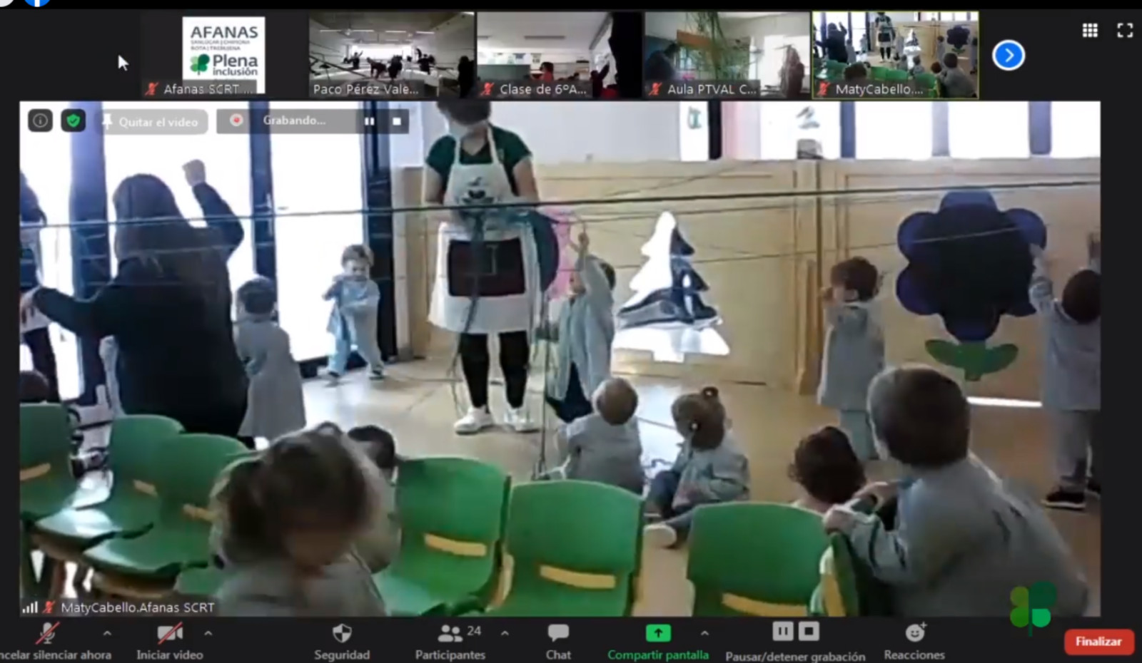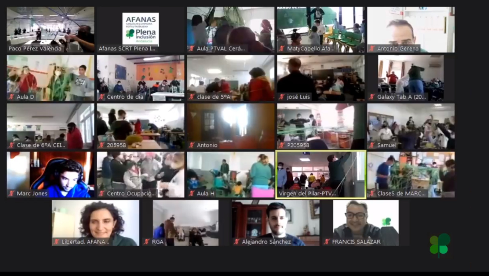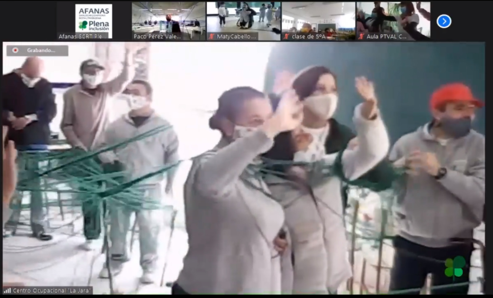 En la actividad, que se ha retransmitido a través de la página de Facebook de Afanas SCRT, han participado todos los centros de la entidad; los Centros de Educación Especial (Infantil y FP), el Centro Ocupacional `la Jara´, la Unidad de Día, la Escuela Infantil, Fernando de Magallanes y la RGA (Residencia de Gravemente Afectados). También se han sumado a la iniciativa el CEIP Guadalquivir el Centro Docente Nuestra Señora de los Reyes (los Maristas). También han intervenido el Presidente de Afanas Sanlúcar, Antonio Fernández, el alcalde de Sanlúcar, Víctor Mora y el artista autor de la idea, Paco Pérez Valencia.